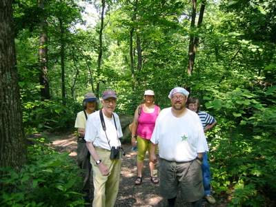 Finally, here's a picture taken a day or two later, after my dad and his wife Katy arrived. We're all hiking a path up Big Round Top. That's Katy, Richard, Jackie, Steven, and Lucy.
