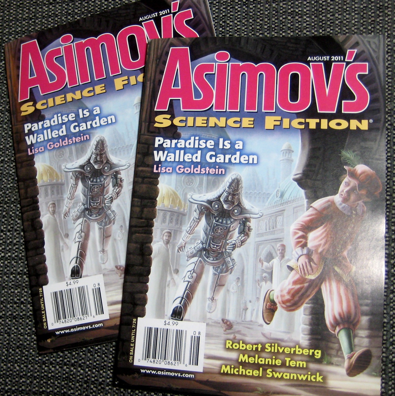 I got my contributors copies of the August Asimov’s! It’s a treat to see my story in print.