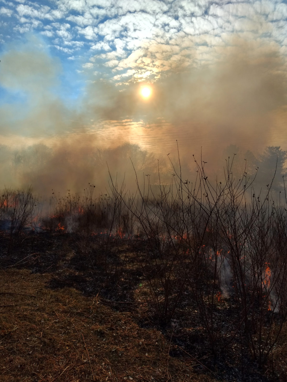 The patch of prairie we burned was 1.5 acres, and took a little over an hour to burn.