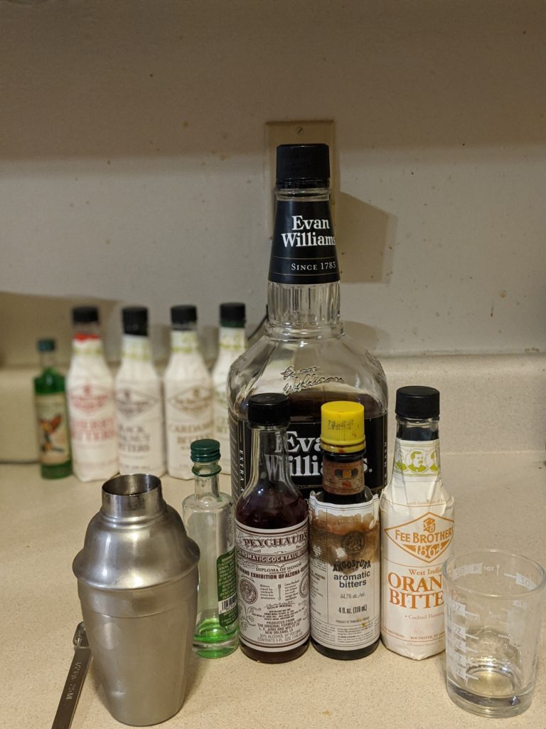 Having been instructed in how to make a Sazerac by our bartender yesterday, today I made one for @jackieLbrewer. Main difference: three kinds of bitters. 📷 #mbfeb