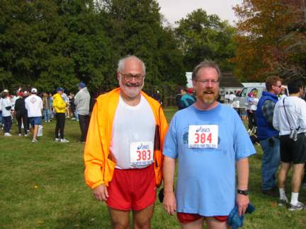 Chuck McCaffrey ran with me. He's a runner. He's been a runner for years. This picture shows the two of us just moments after the finish. He's the one with the maniacal grin. I'm the one still gasping for air.