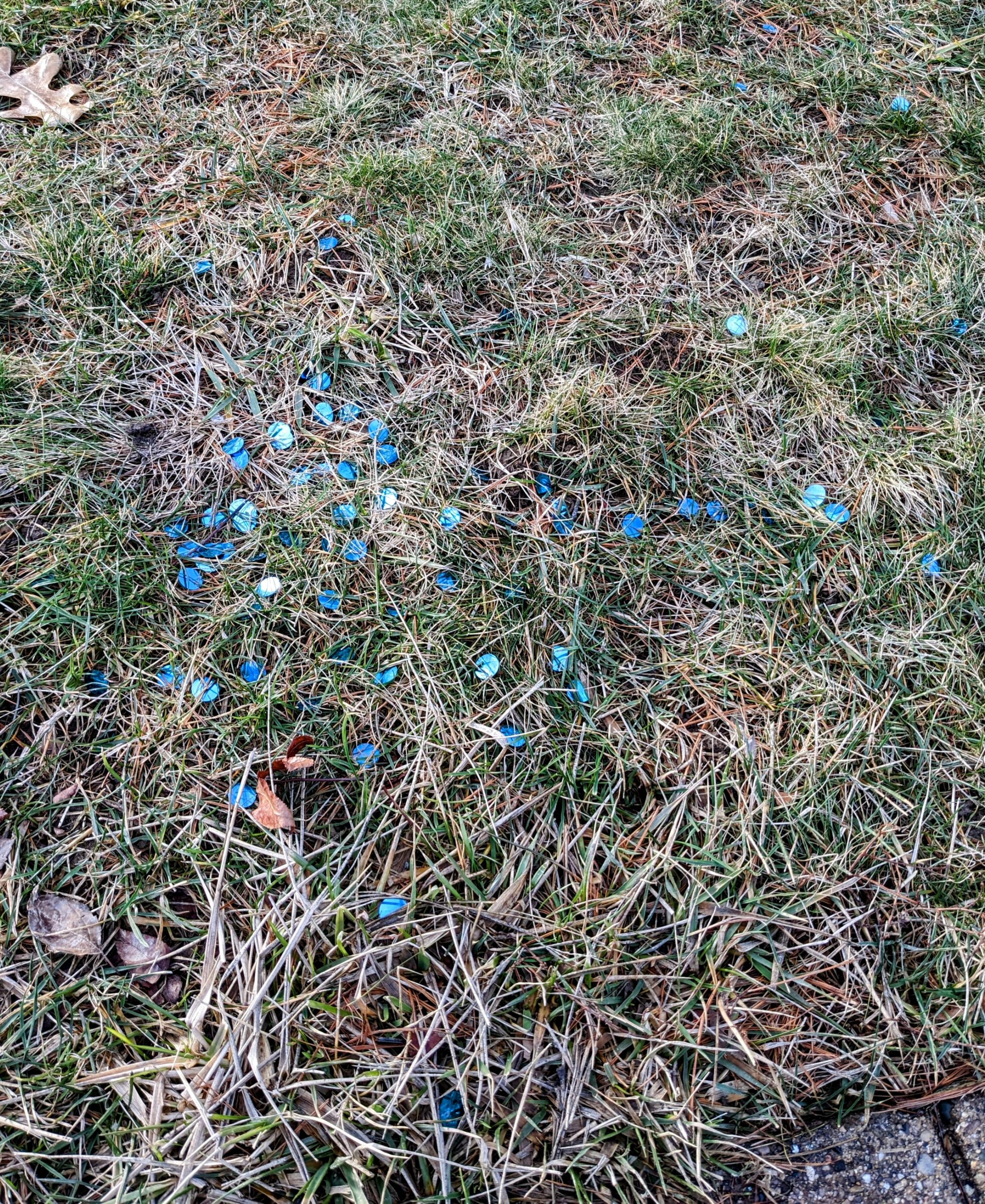 Many years ago, my dad drew my attention to just such a spot—and then to another, similar spot nearby. My dad suggested that the first spot was the site where the bird was caught and killed, and then the second spot was where it had been consumed by a predator who wanted to eat his meal in a more secure location. I remember my dad identifying that behavior (moving the prey before eating it) as particularly common for some particular predator, but I’ve forgotten what it was.