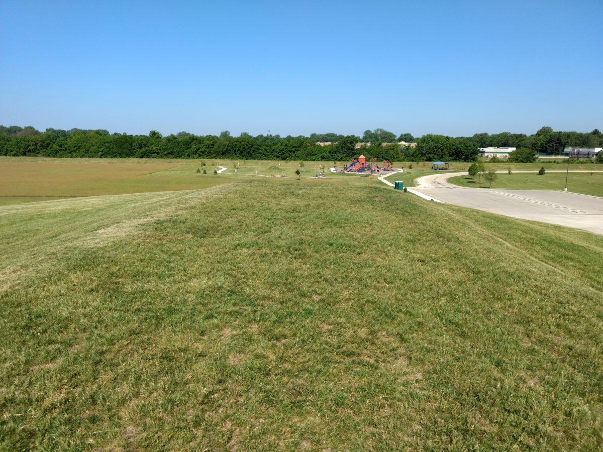 There’s not much in the way of rocky terrain here in Central Illinois (although there are some forest paths with enough exposed roots to produce a reasonable degree of ruggedness). There’s also not much in the way of ordinary hills unless you’re willing to drive for at least half an hour, but I do have one reasonably convenient hill: the highest point in the county is just a couple of miles away—a man-made hill in Colbert Park.