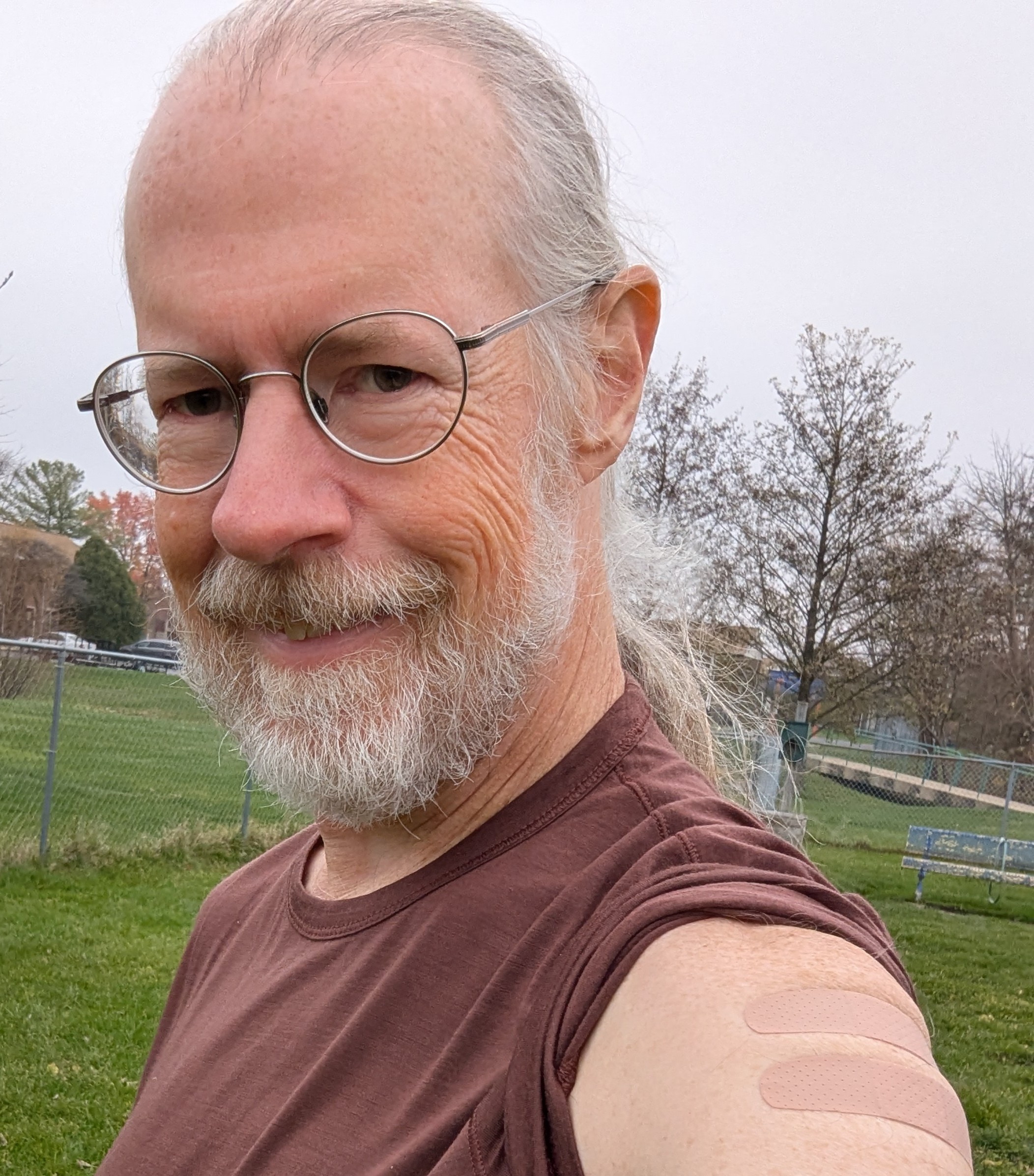 Since then, I’ve been waiting for four months to pass, so I could get the new shot, now that it’s available. (It turns out that now you only have to wait two months, but nobody told me that.) Anyway, the four months are up, so I got my Covid booster and a flu shot this morning.