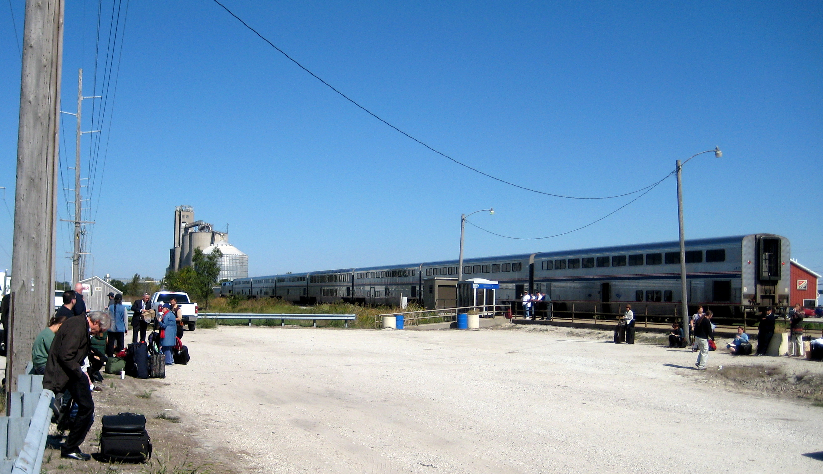 Amtrak hired buses to take us from Gilman on into Chicago. Here’s a picture of where we waited for the buses to arrive: