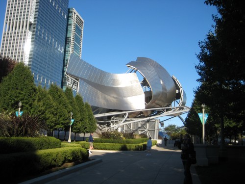 We got to Chicago about three hours later than planned, which rather messed up our schedule for the afternoon, but we had a nice trip anyway. Jackie and I went out for some brisk urban walking shortly after checking into our hotel. In Millennium Park, north of the Art Institute, we saw this: