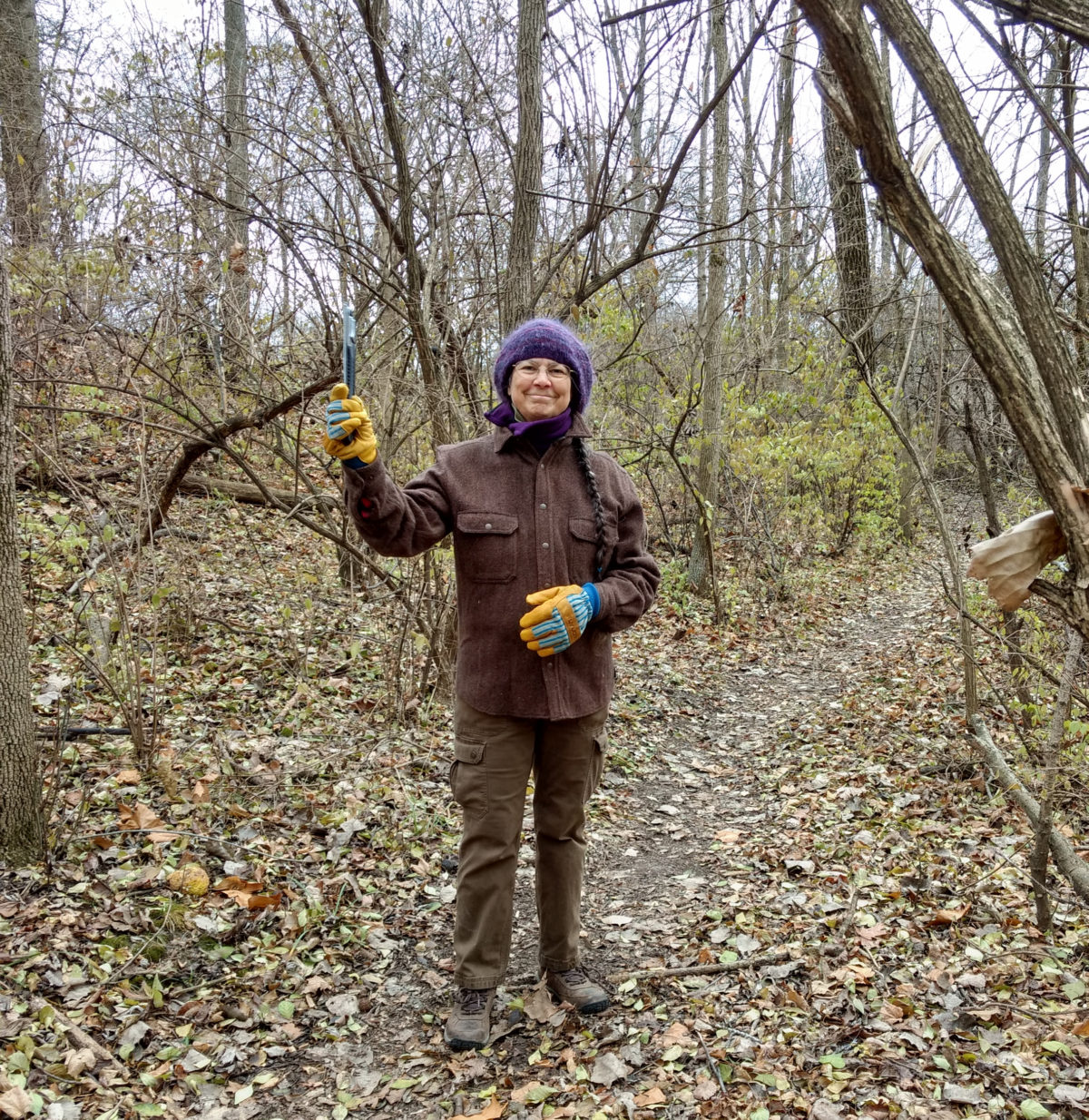 Jackie’s master naturalist program includes a substantial volunteer commitment. It can be met a lot of different ways, but one is working in the various parks, doing things like clearing invasive plants, planting native species, and so on.