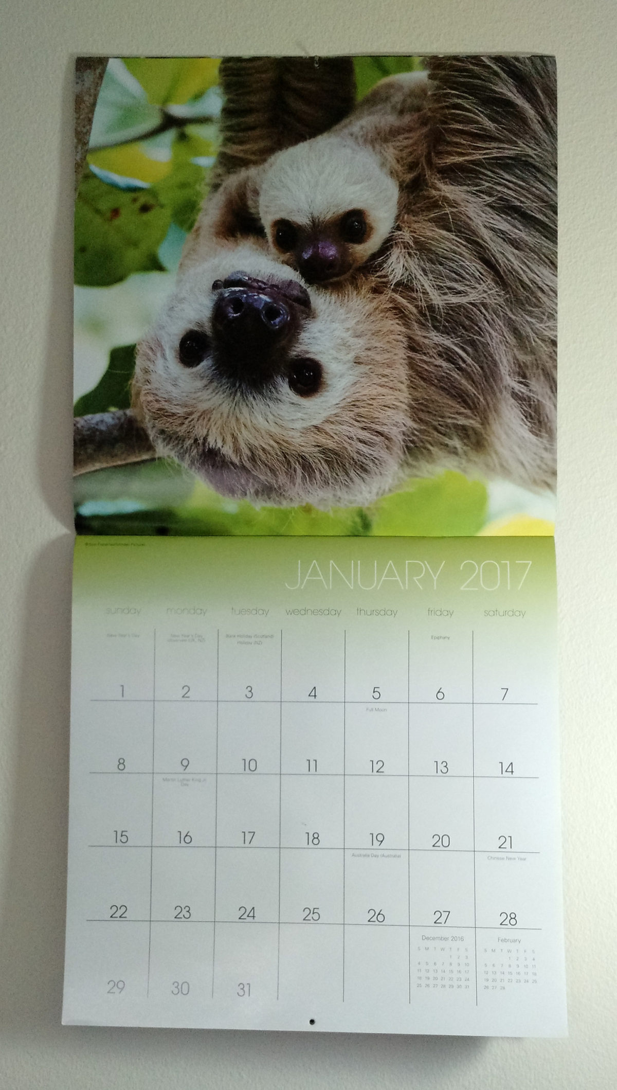For the second year in a row, my sweetie bought me a sloth calendar to hang in the study!